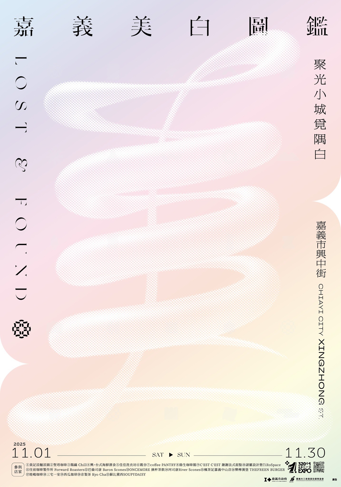 活動呼應嘉義市持續推動的木屋修復、卸妝及人本城市等政策,打造「城市美白」意象,並以「光譜匯聚成白光」隱喻多元共融的城市風貌,將串聯 20+1 間店家,於 " 11/1-11/30 " 正式登場,邀請朋友們將時間 #留白,來興中街走訪,找店家集章、兌獎!