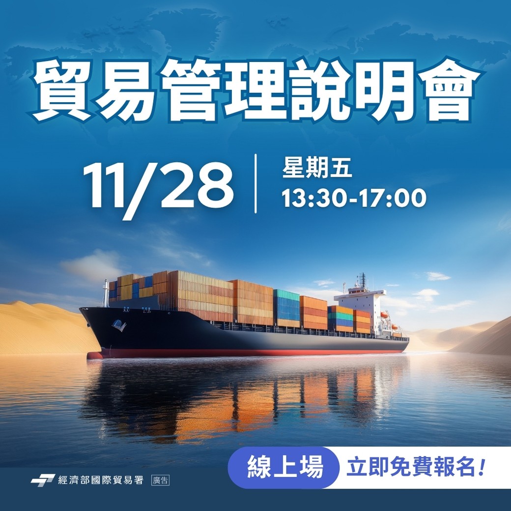 【資訊分享】11/28 經濟部國際貿易署「貿易管理說明會」(線上場次)(免費參加)