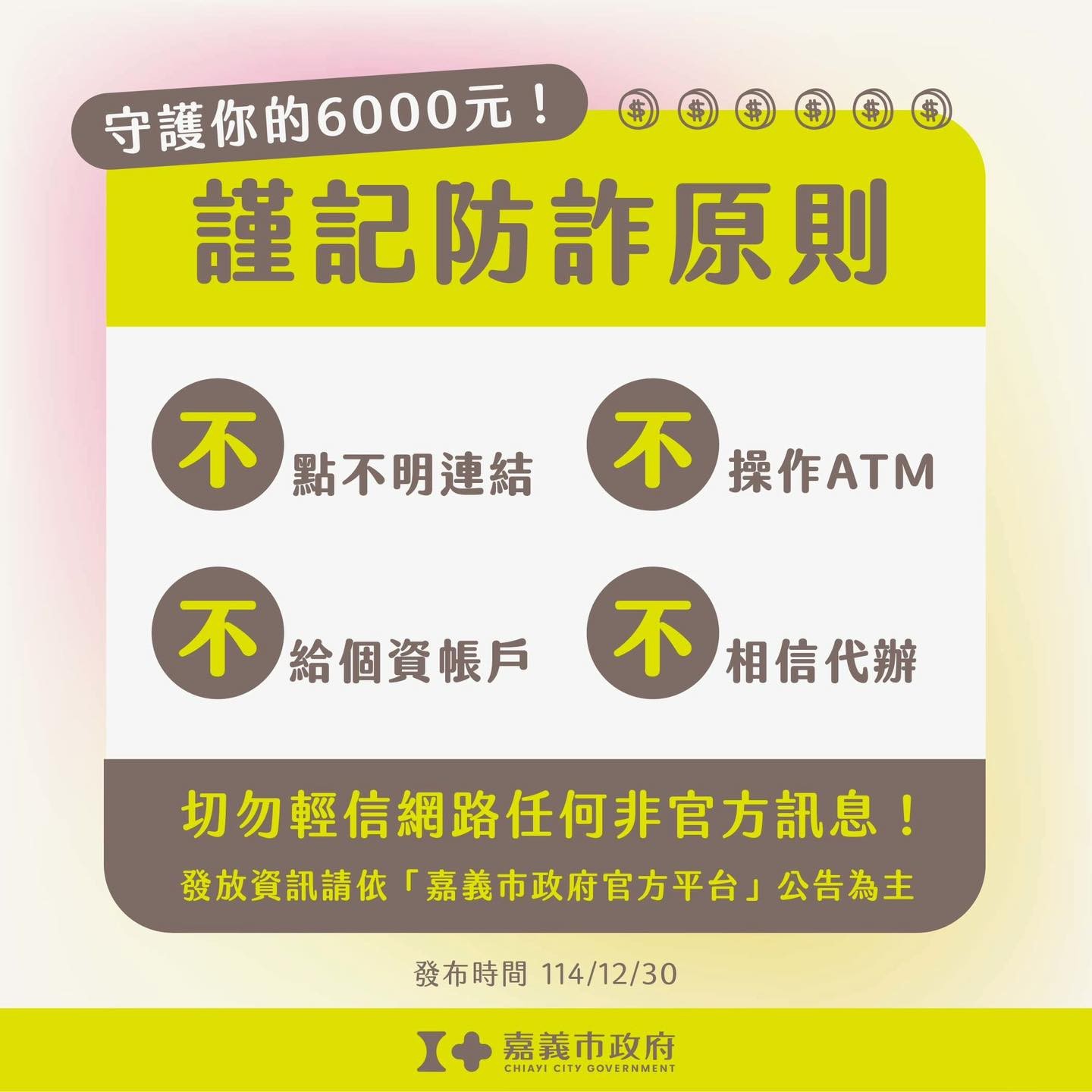 【資訊轉知】嘉義市政府強化民眾消費韌性普發6,000元現金(限設籍嘉義市之市民)
