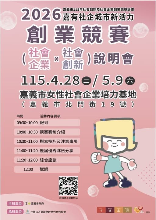 【地方補給】4/28、5/9 嘉義市政府「115年社會創新及社會企業創業競賽說明會」